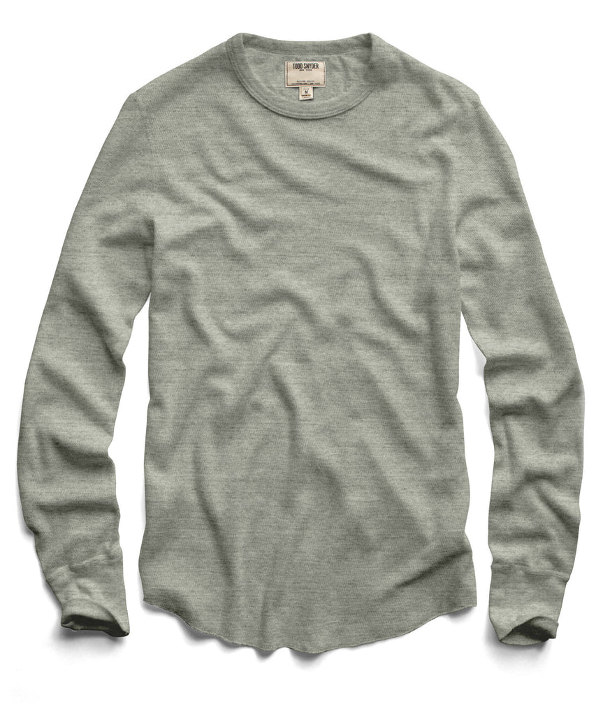 Made from 100% cotton our Algae Long Sleeve Thermal Shirt is much more than your average thermal. Made to contour to your body and for a luxurious fit and colored with a subtle alga tone. For a contrast that's never cliche try wearing with our Blue Selvedge Denim Jeans.