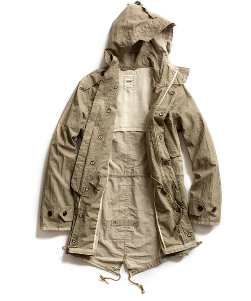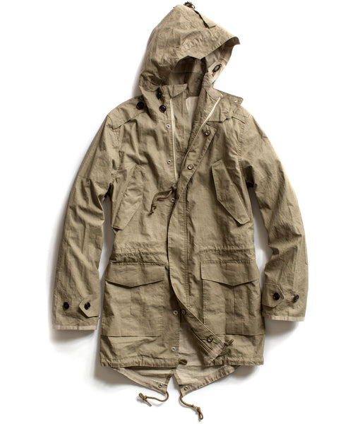 Designed with the kind of military tailoring where form and functionality are essential. We've made this flight parka with lightweight ramie fibers, adjustable draw strings at the waist and hem, and Chest snap-flap pockets/ front button-flap pockets that add comfort and accessibility. For a refined and casual comfort we suggest pairing with our Whiskey Selvedge Denim Jean.