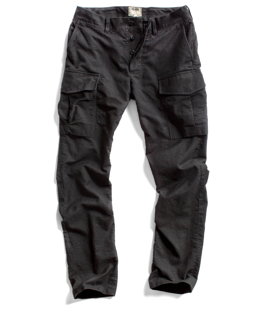 Todd makes no bones about how much military design and utility has inspired him, which is why we're offering our Black Officer Cargo Pant. Made for a tailored look and fit, the pant makes a smart pairing with our Blue Dyed Officer Shirt.