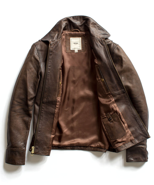 Soft, lamb leather with a rugged look, our 'Dean' leather jacket combines a modern fit with the kind of rebel attitude that 1970's Hollywood was famous for. Stitched with a bemberg interior and fitted with a front two-way closure and adjustable button cuffs our Brown Dean Leather Jacket is made with not only your comfort in mind, it's meant to impart the image of casual confidence that James Dean made look so easy. Up the ante on your 'rebel without a cause' look with a pair of our Indigo Selvedge Denim.