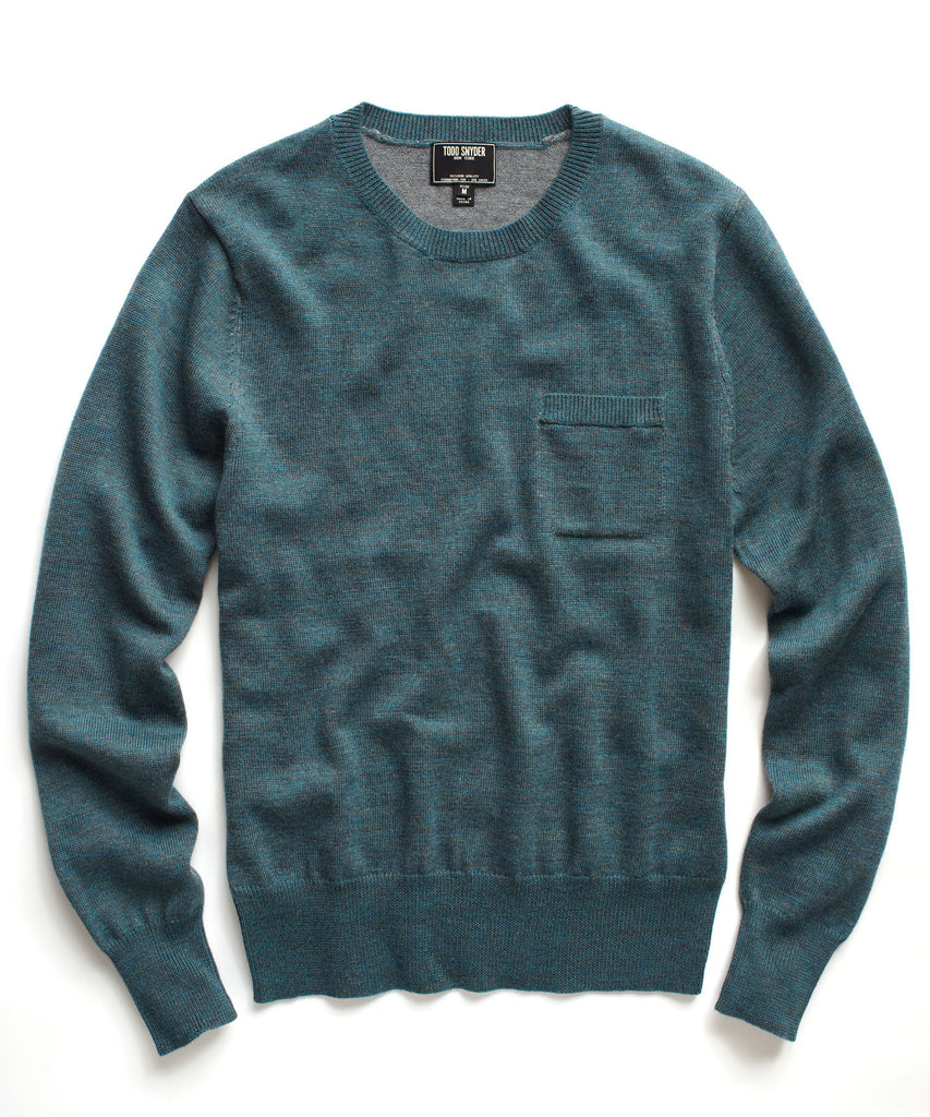 Constructed for an understated look, our Dark Teal Pocket Crew Sweater is a subtle spin on a relevant classic. Stitched with contour fitting hems for a modern fit, it adds a studied approach to the thrown-on-and-go aspect of your wardrobe. This piece makes a subtle but clear statement with our Grey Wool Pant.