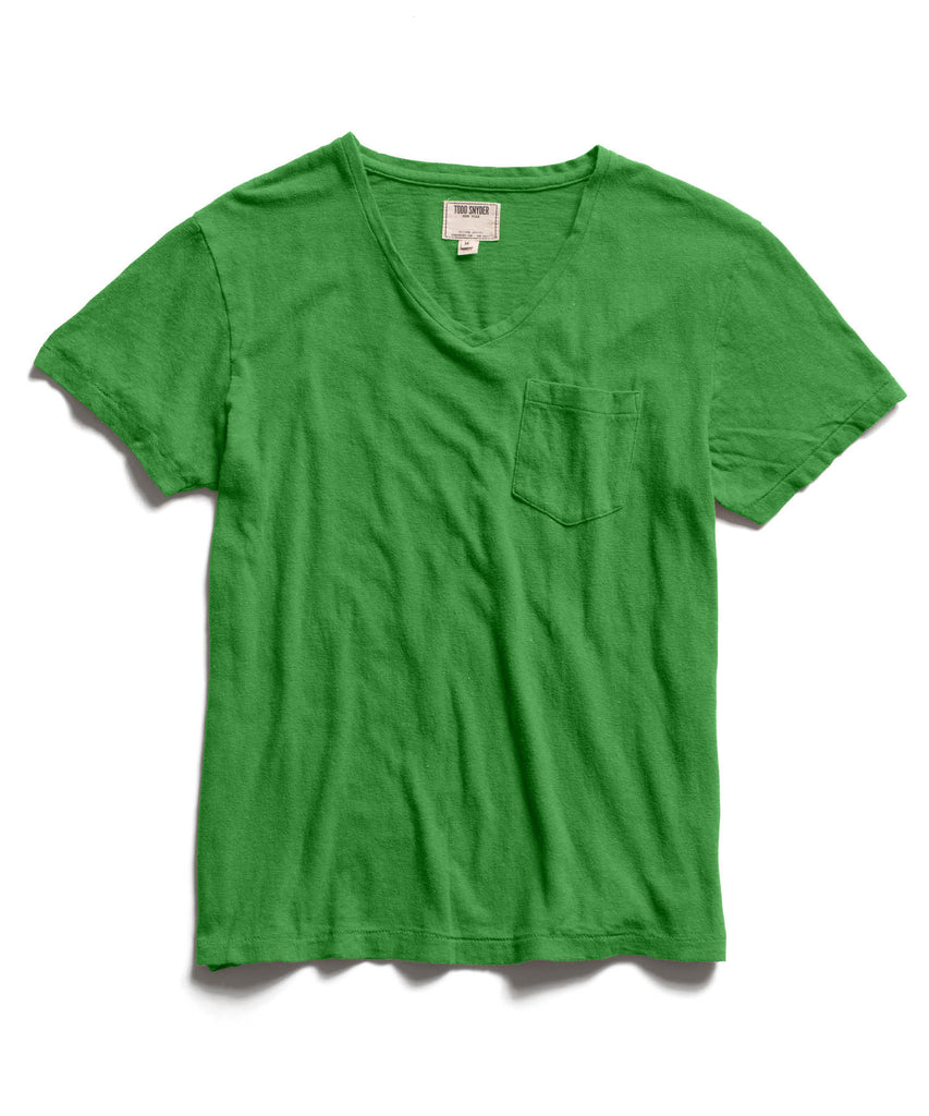 Combining a light, smart fit with a bright canvas of color, the Green Pocket V-Neck T-Shirt is perfectly crafted for classic style. It is a perfect fit with our Black Selvedge Denim Jeans.