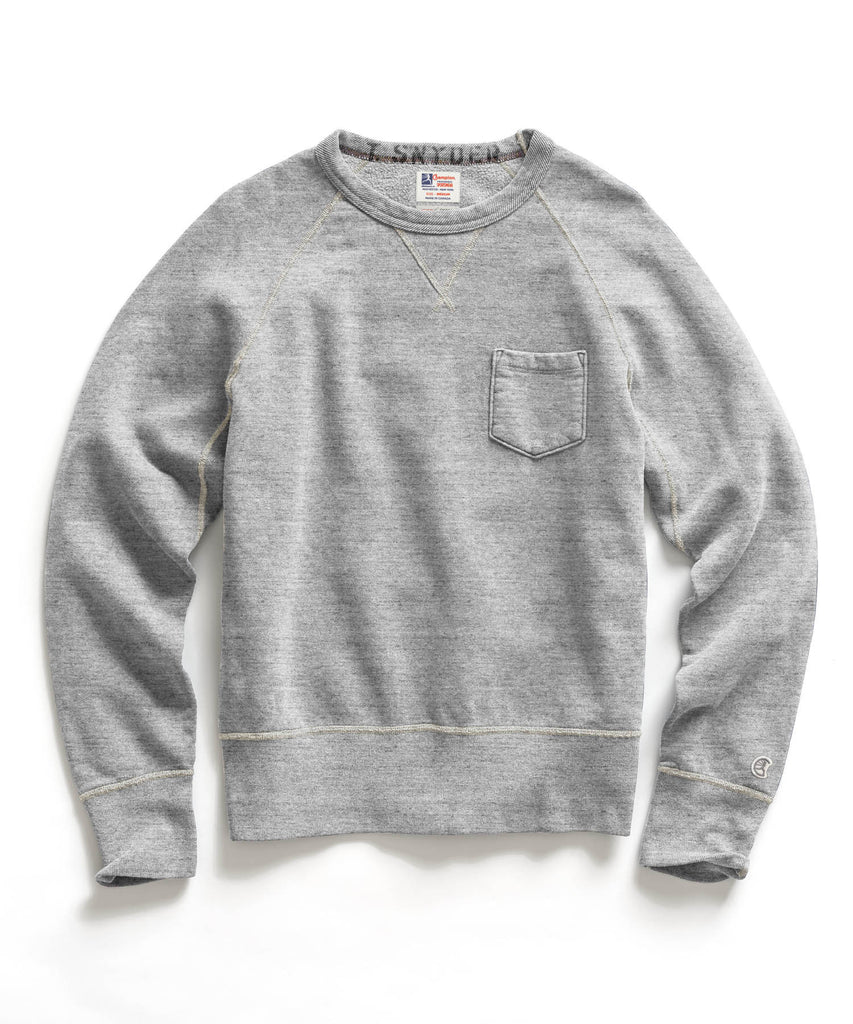Created with an insert v that allows for expansion gussets in the shoulders, the Grey Heather Pocket Sweatshirt is not only a unique piece in its design, it's uniquely comfortable. Ideal for an evening out or dressed up with a collared shirt for the office.