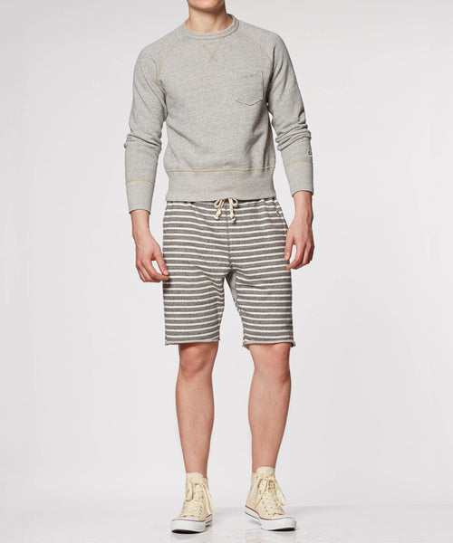 The Grey Heather Stripe Sweatshort is all about combining comfort with the cool sensibility of warm weather attire. Made in Canada and designed in America.