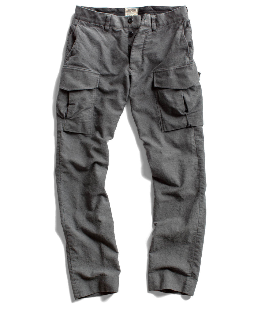 The Grey Officer Cargo Pant has been made for the gentleman who needs a combination of versatility and modish innovation in his daily wear. If we may, we suggest contrasting the color and texture and coloring of the pant with our Blue Stripe Crew Sweater.