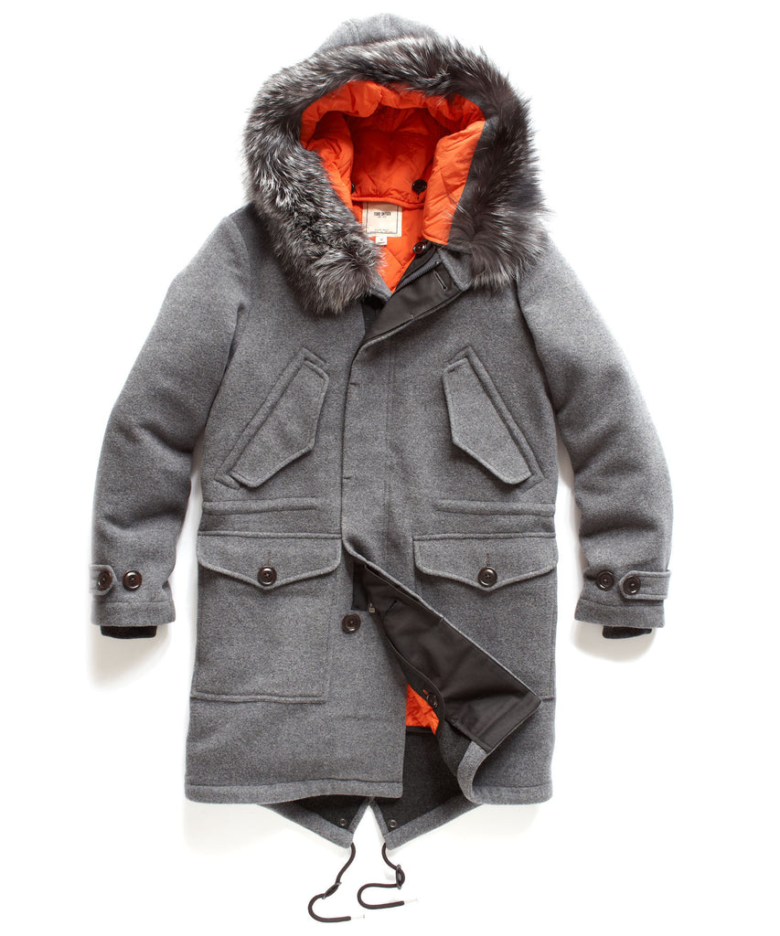 Made for exceptionally cold days and nights, our Fox Fur Marshcoat is crafted with a removable quilted lining and expertly stitched with double faced Italian wool melton for a modern look that'll keep you warm. And for an extra layer of depth try pairing with our Ivory/Black Shawl Collar Sweater.