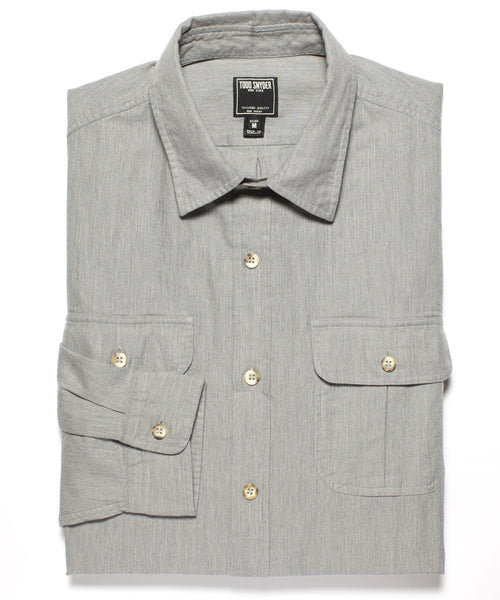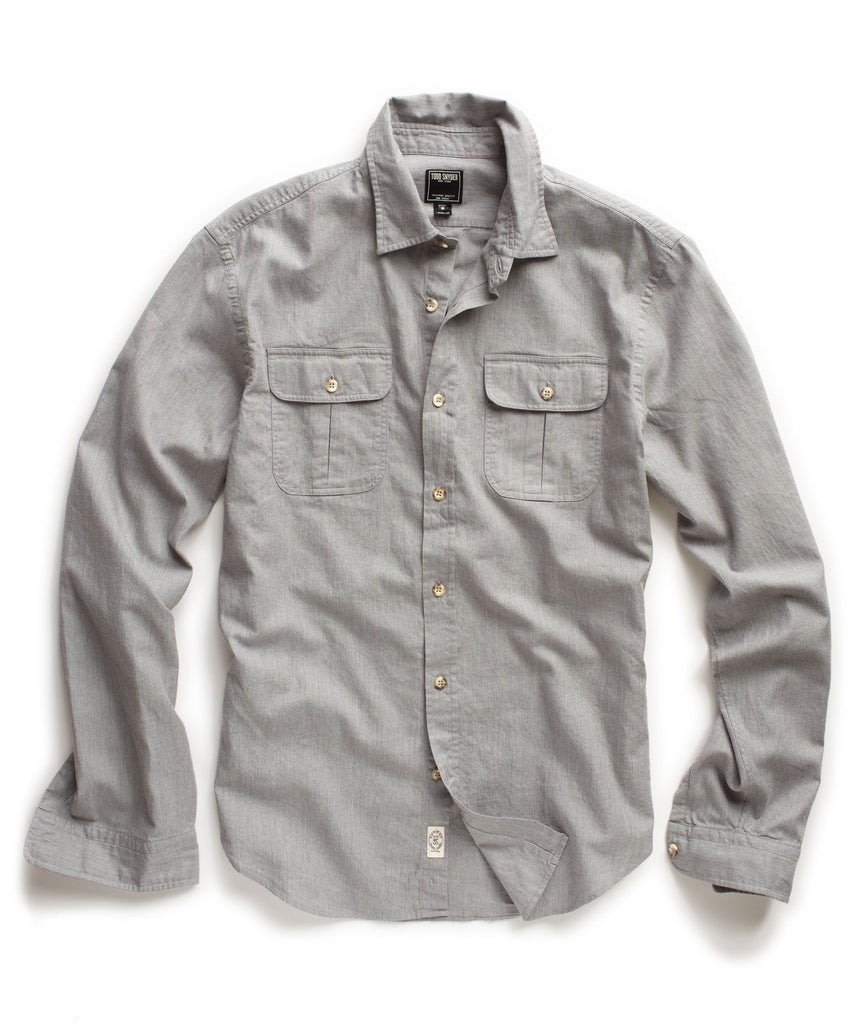 Designed with double breasted pockets and made for a trim fit, our Grey Sport Shirt is equal parts bold and functional. A great fit under our Navy Dylan Jacket.