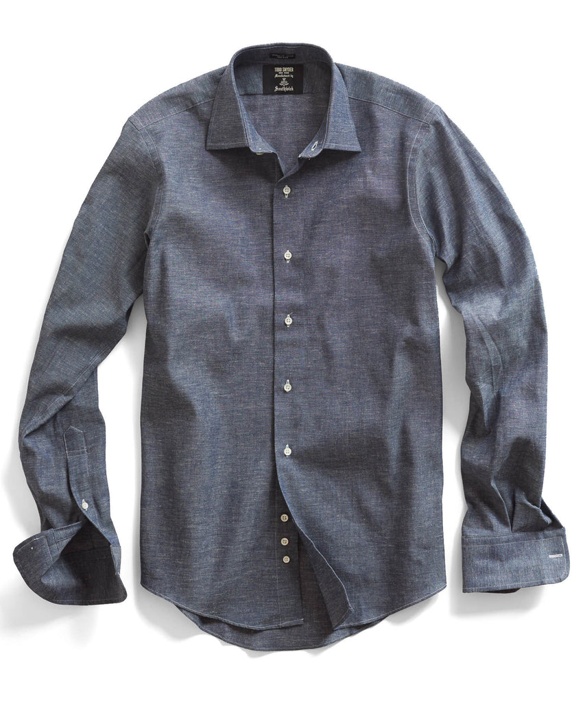 We guaranteed that our Indigo Dress Shirt will become a stalwart in your closet. Crafted from pure cotton for purely inimitable style, we suggest pairing with the timeless quality of our Black Selvedge Denim Jean.
