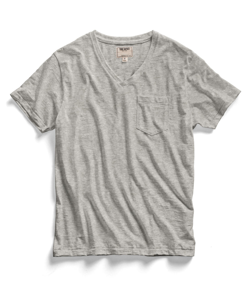 Our Light Grey Pocket V-Neck T-Shirt makes for the epitome of a versatile wear. Made for comfort and a casual yet confident style, we suggest bringing out the best in contrast by pairing with our White Selvedge Denim.