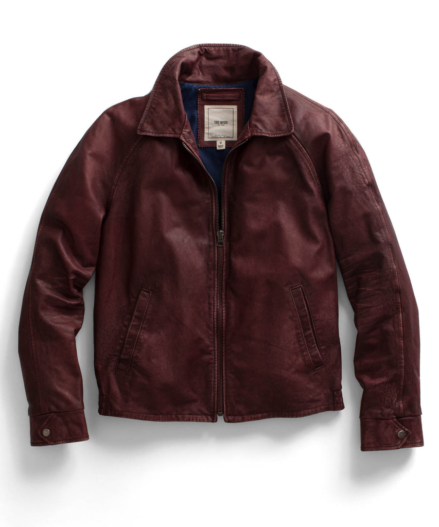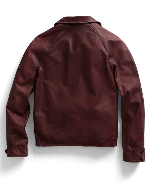 Rendered from genuine leather, the Maroon Raglan Prep Jacket is colored with a vintage maroon that offsets the subtle elegance created by its raglan sleeve. Fitted with an elastic back and lined with a Bemberg silk interior, the jacket makes an even keener impression when paired with our Blue Selvedge Oxford Shirt.