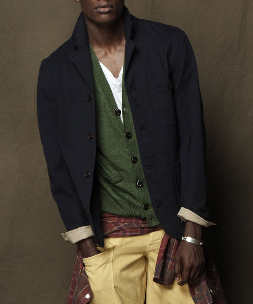 Crafted from the finest cotton Todd has poured all of his adroit sense of design into tailoring our Navy Knit Blazer. Created with modish contours for a smart fit the Blazer comes equipped with a modern shape all its own. A deft fit with our Khaki Selvedge Officer Pant.