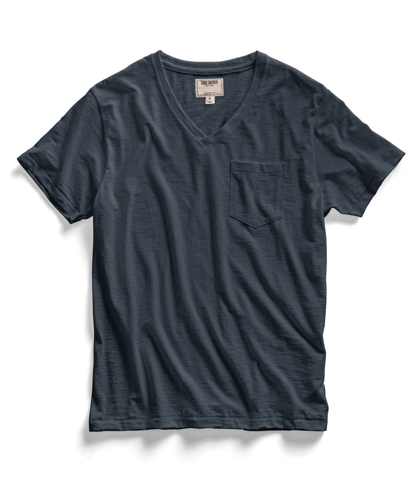 Made from 100% genuine cotton the Navy Pocket V-Neck T-Shirt fits with ease and adds a bolstered palette of color to the t-shirt section of your closet.