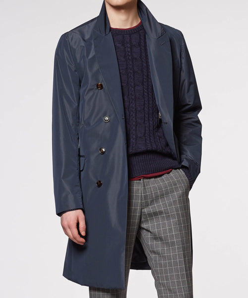 Trenches are made for spring showers and the Navy Trench Coat is no exception. Crafted from polyester that’s primed to stand up to the elements the trench is guaranteed to satisfy both the functional and style requirements it takes for a piece to make it into your wardrobe. An ideal fit with our Indigo Cable Sweater.