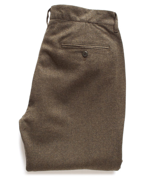 A little twist in color on a proven classic goes a long way. Crafted with wool flannel and expertly stitched, our Olive Wool Pants adds classic and modern styles to the heart of your closet. For a natural pairing try our Green Linen Twist Pocket Crew Sweater.