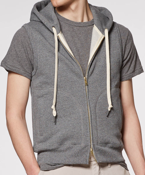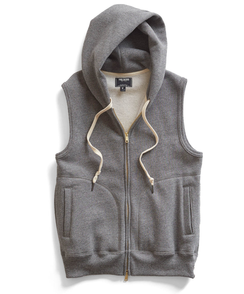 The key to Todd’s success has been equal parts functionality and deft styling and in that spirit we’re proud to offer the Salt & Pepper Sleeveless Hoodie. Perfect for the gentlemen on the streets rain or shine, cold weather or warm.