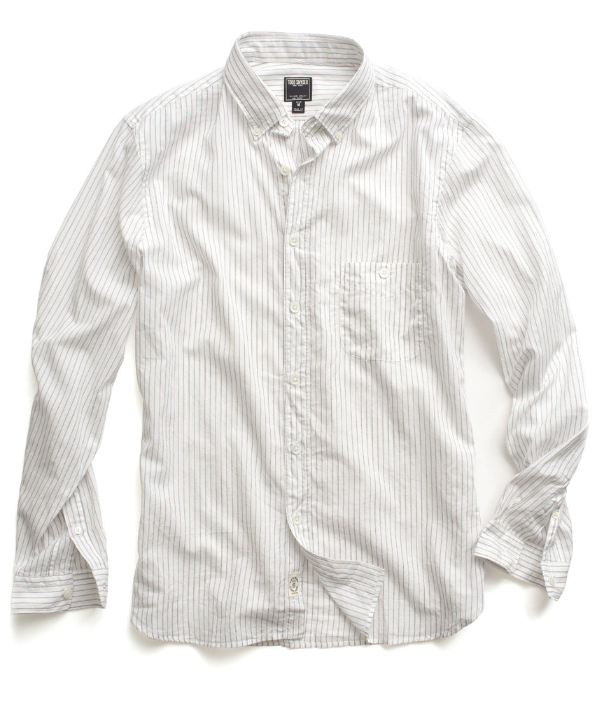 Every man on the go needs a dress shirt that'll go everywhere with them. Our White Stripe Sport Shirt is perfect for the renaissance man. If we may suggest a pairing, however, we'd match the classic look of this shirt with the timeless versatility of our Indigo Selvedge Denim Jeans.