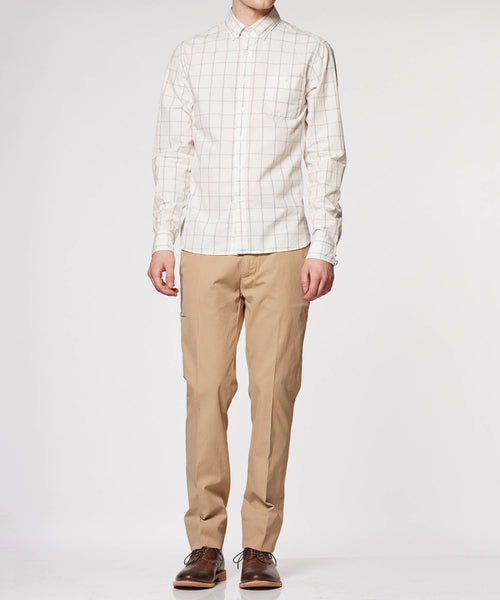 The White Square Sport Shirt is made from durable and soft cotton and has been designed with a windowpane square design that’s ideal for the office or the weekend. It’s the kind of shirt you’ll want to live in no matter scenarios you find yourself in. An ideal fit with our Olive Selvedge Officer Pant.